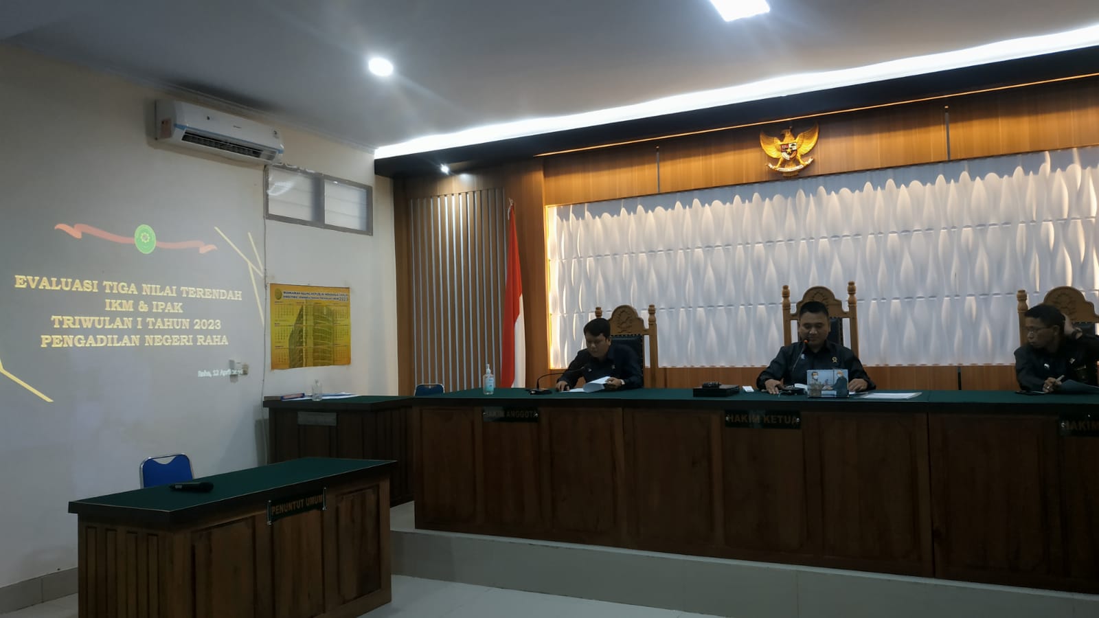 Rapat dipimpin langsung oleh Ketua Pengadilan Negeri Raha, Bapak Muhammad Sukamto, S.H., M.H. Rapat ini membahas mengenai unsur maupun indikator yang terdapat pada IPAK dan IKM. Selain itu, dibahas pula tiga indikator terendah dalam survei tersebut untuk ditindaklanjuti agar pelayanan Pengadilan Negeri Raha menjadi lebih baik.