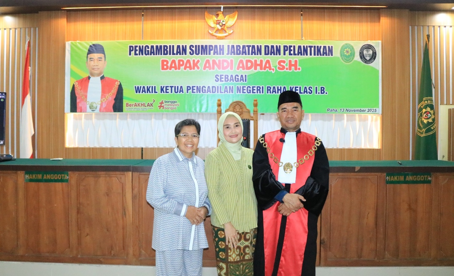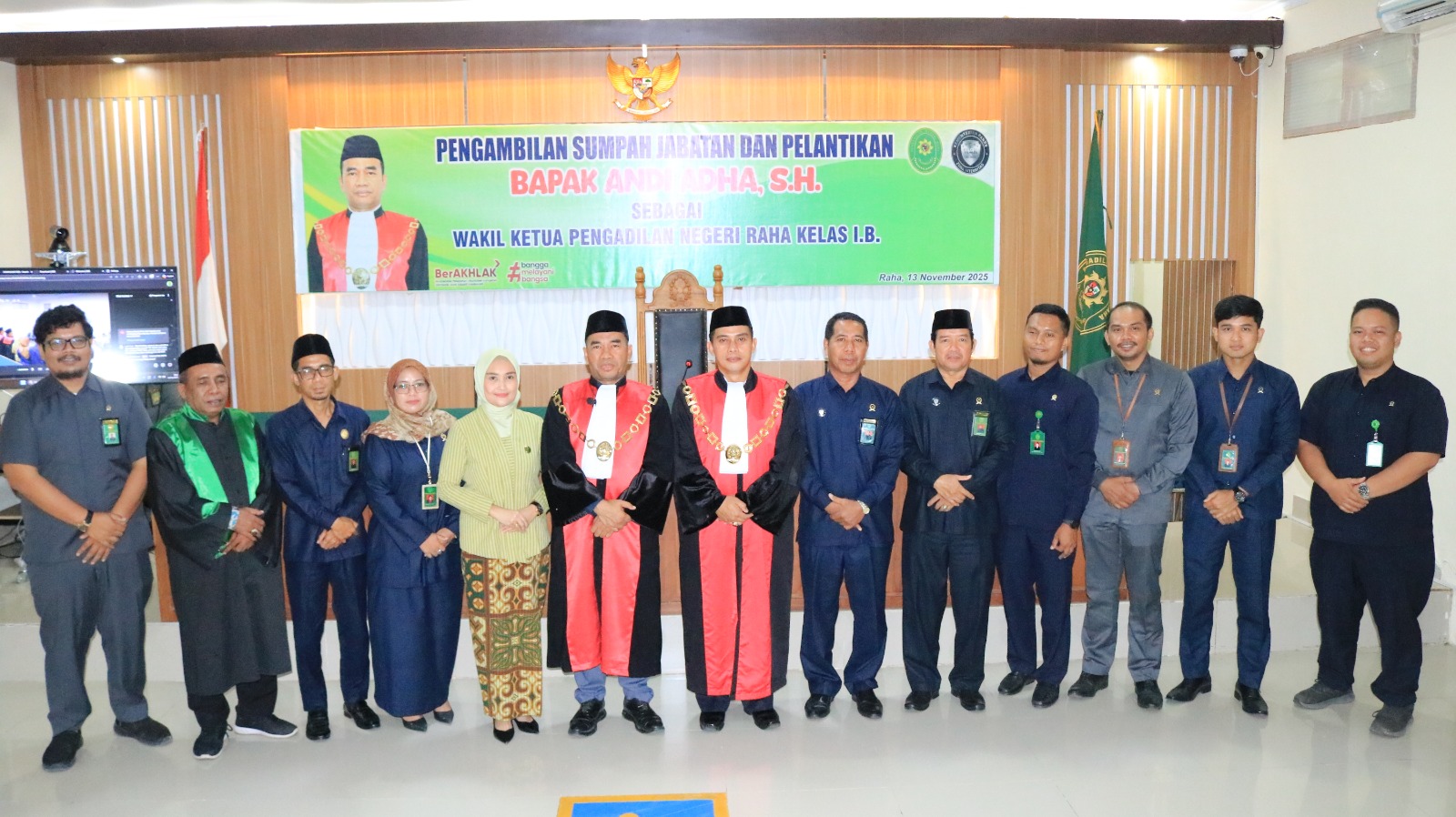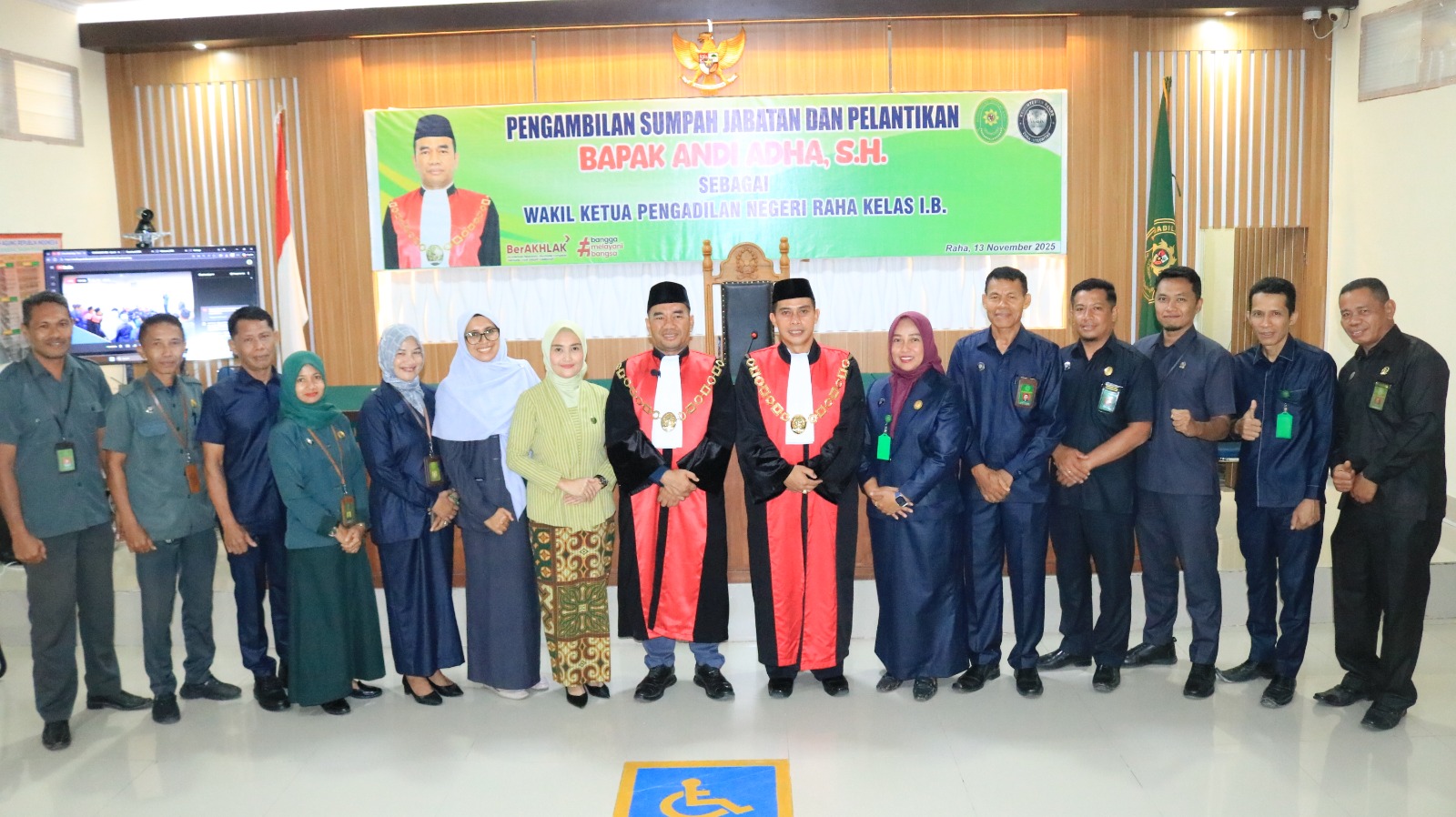 Pelantikan ini merupakan tindak lanjut dari surat Keputusan Ketua Mahkamah Agung R.I. tentang promosi/mutasi jabatan di Lingkungan Peradilan Umum, dimana Bapak Andi Adha, S.H. sebelumnya menjabat sebagai Ketua Pengadilan Negeri Belopa. Dengan pelantikan ini, beliau resmi bergabung dijajaran pimpinan Pengadilan Negeri Raha sebagai Wakil Ketua.