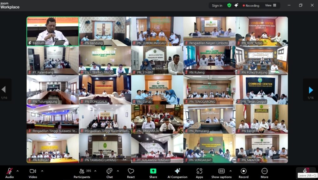 Raha, 24 November 2025 | Pengadilan Negeri Raha kembali mengikuti kegiatan PERISAI 11 yang diselenggarakan oleh Direktorat Jenderal Badan Peradilan Umum (Ditjen Badilum) secara virtual, Senin(24/11/2025). Kegiatan yang mengangkat tema “Eksekusi Lelang, Permasalahan dan Solusi” ini diikuti oleh Ketua Pengadilan Negeri Raha, Bapak Achmad Wahyu Utomo, S.H., M.H. beserta jajaran di Ruang Command Center Pengadilan Negeri Raha.