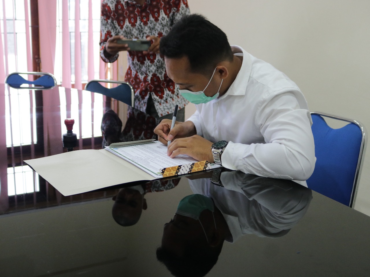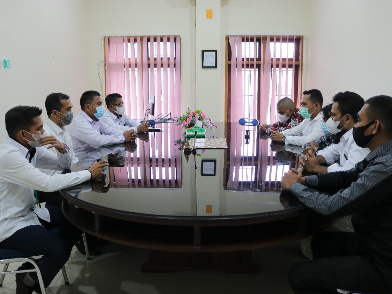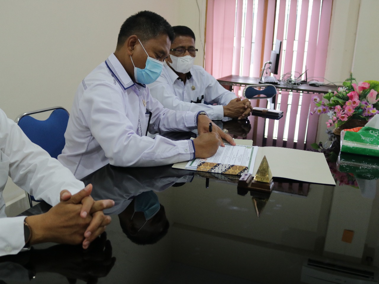 Penandatangan Mou Bertempat di Ruang Rapat Pengadilan Negeri Raha dan dilaksanakan sesuai dengan protokol kesehatan.