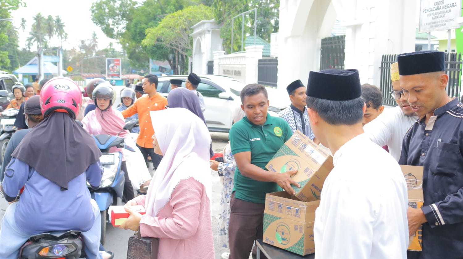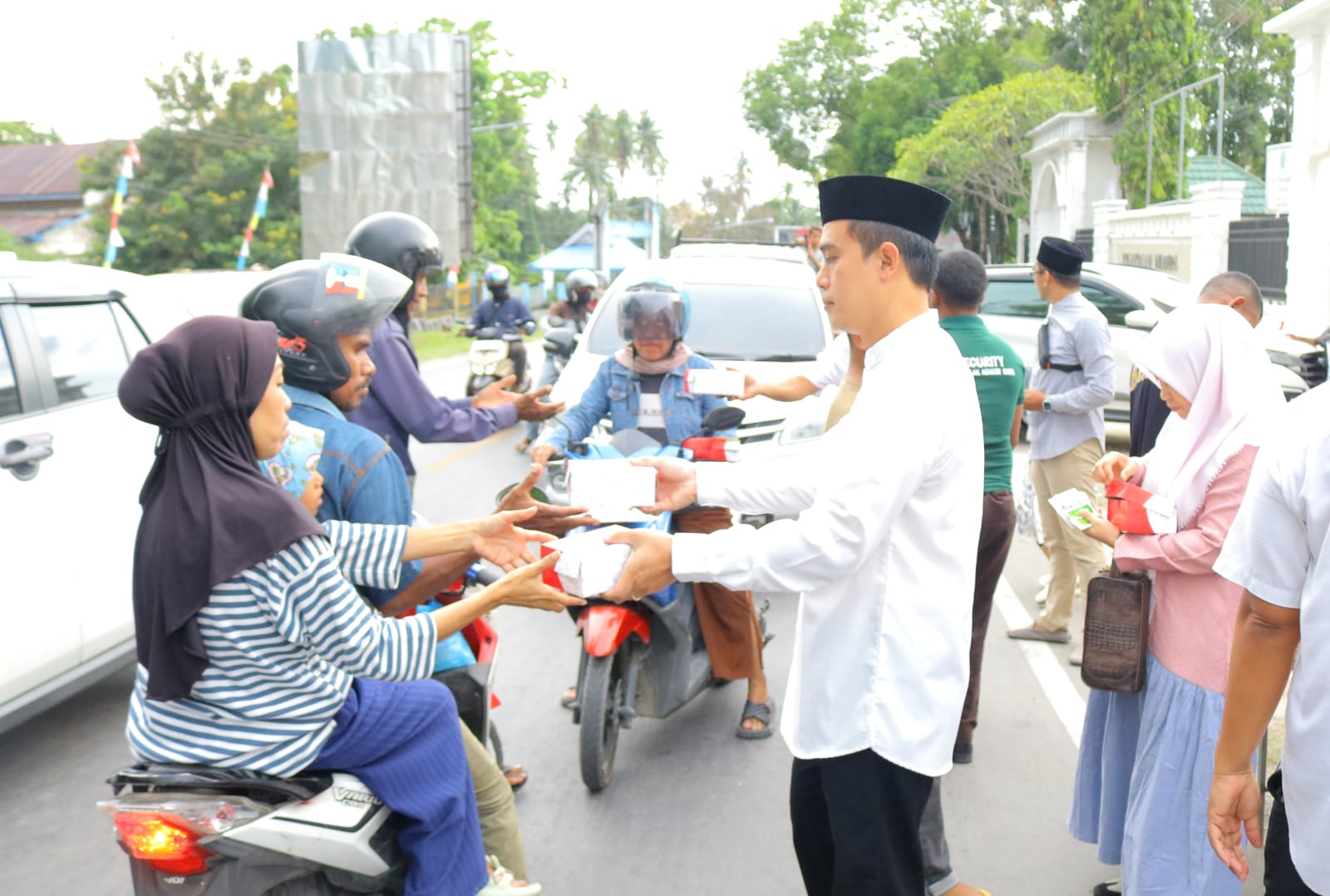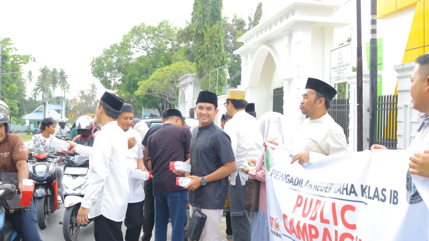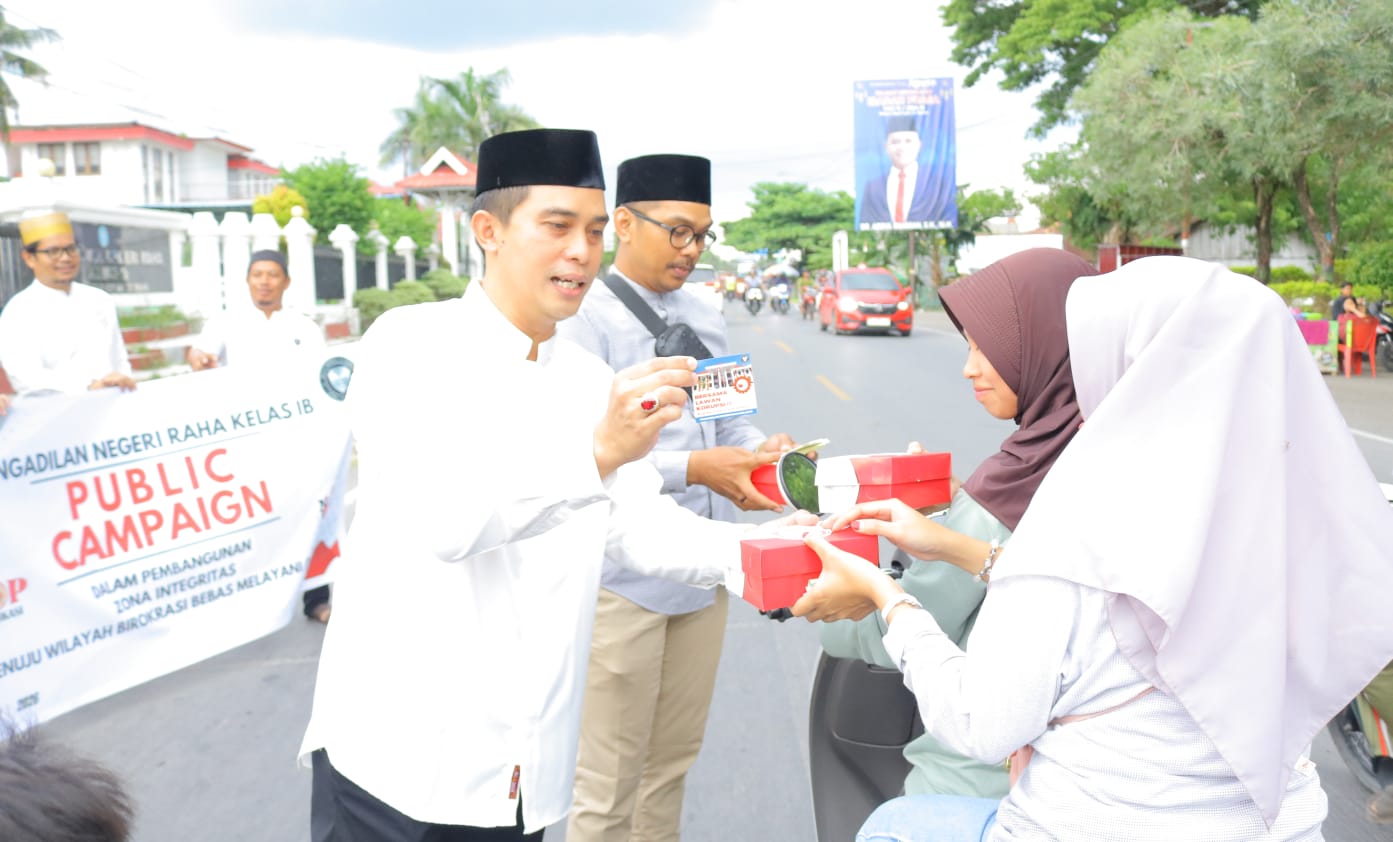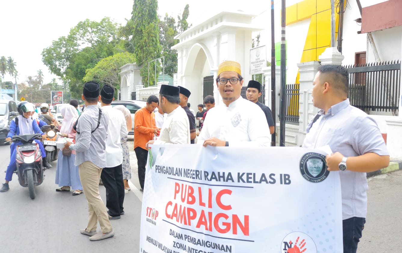 Rangkaian kegiatan sore itu tidak hanya diisi dengan duduk bersama. Sebagai wujud kepedulian sosial, acara diawali dengan kegiatan Public Campaign dan pembagian bingkisan buka puasa (takjil) kepada para pengendara yang melintas di depan kantor PN Raha. Senyum bahagia tampak dari para penerima bingkisan maupun keluarga besar PN Raha yang membagikannya.